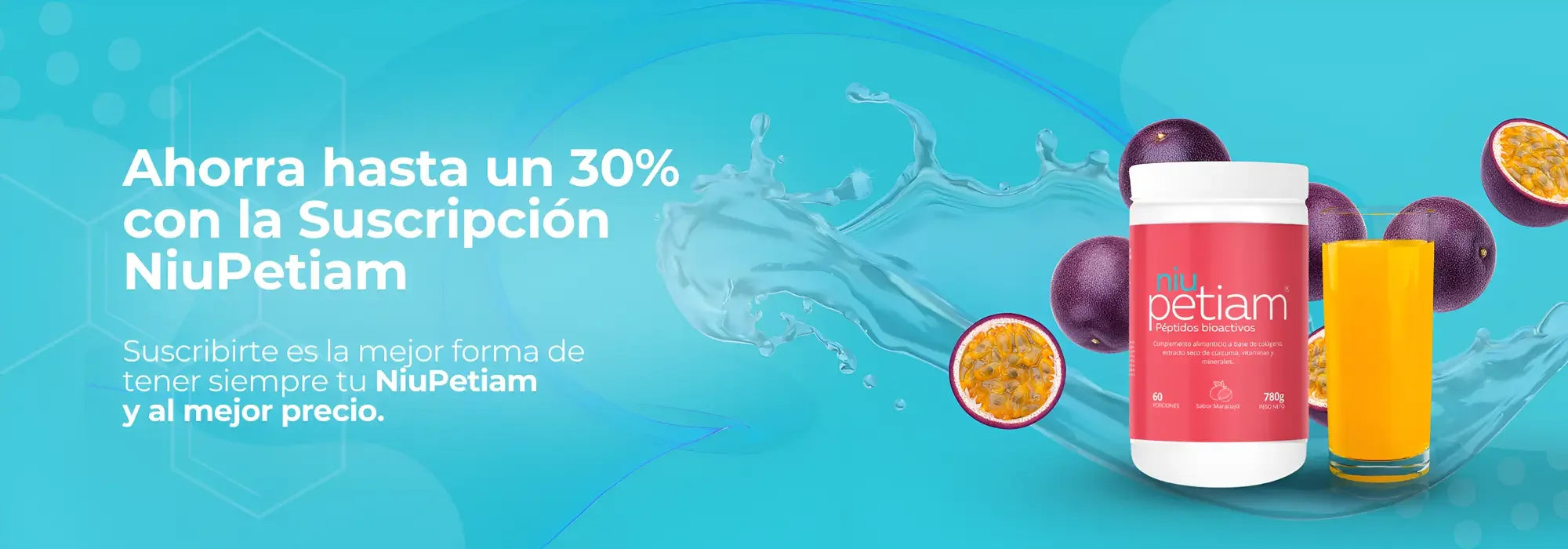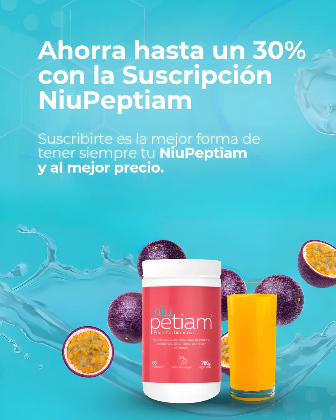 Suscripción + Botella de Regalo NiuPetiam® Sabor Maracuyá - 60 porciones (780g) - Recibe Cada 2 Meses