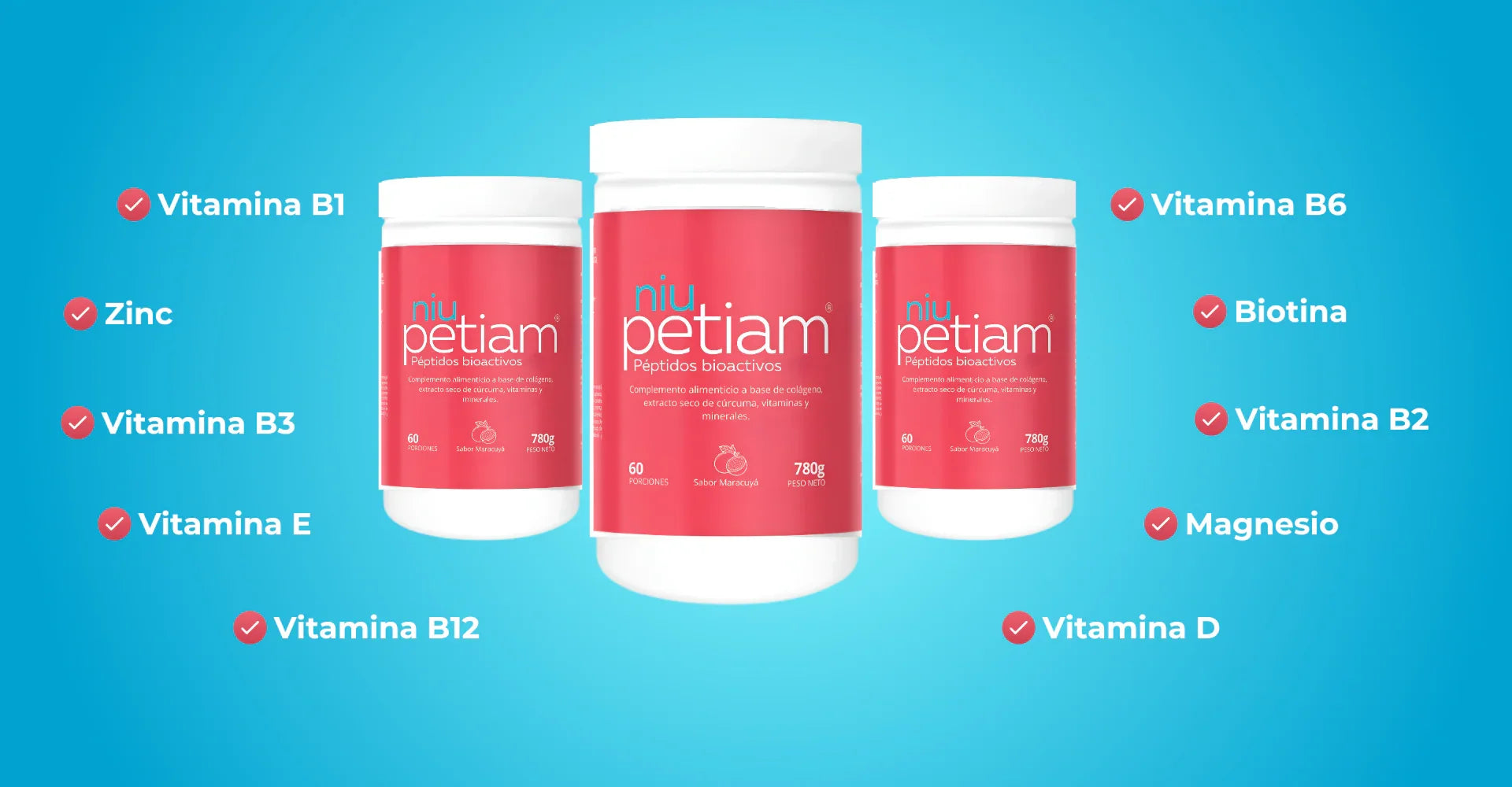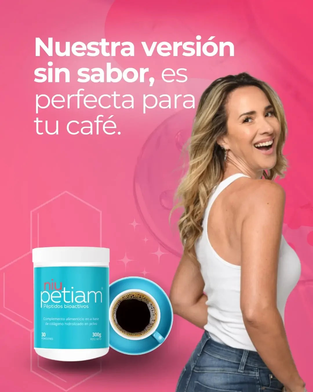 NiuPetiam es un colágeno hidrolizado premium con vitaminas y minerales esenciales que ayudan a fortalecer tu piel, cabello, uñas y articulaciones desde el interior.
